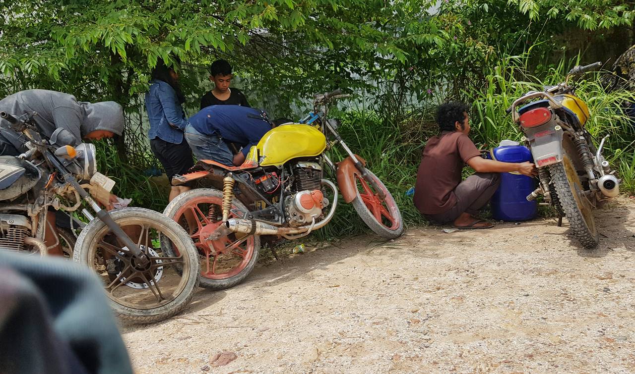 Menurut informasi yang diperoleh HMS dari seorang karyawan SPBU yang tengah beristirahat, beberapa bulan terakhir BBM jenis Premium memang langka dikarenakan keterlambatan pengiriman, dan dia mengakui banyaknya sepeda motor Suzuki Thunder yang mengantre di SPBU tersebut. “Sebenarnya bukan hanya sekarang. Dari sebelum langka mereka juga banyak. Pas langka ini, mereka makin banyak,” katanya kepada HMS. “Sempat juga kita berantem sama mereka. Susah mau kita bilangin. Nanti setelah dimarahi, mereka datang lagi, tapi jokinya beda, motornya sama. Banyaklah akal mereka.”