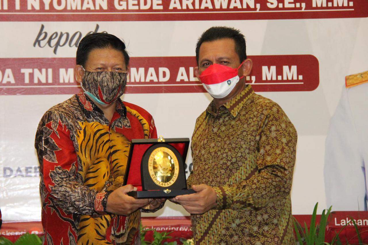Gubernur Kepulauan Riau, Ansar Ahmad mengucapkan apresiasi sekaligus rasa terima kasihnya kepada Laksamana Madya TNI I Gede Nyoman Ariawan atas pengabdiannya sebagai Panglima Komando Gabungan Wilayah I (Pangkogabwilhan I). Apresiasi itu disampaikan Ansar dalam pisah sambut jabatan Pangkogabwilhan I di Gedung Daerah, Tanjungpinang, Kamis, 12 Agustus 2021 malam.