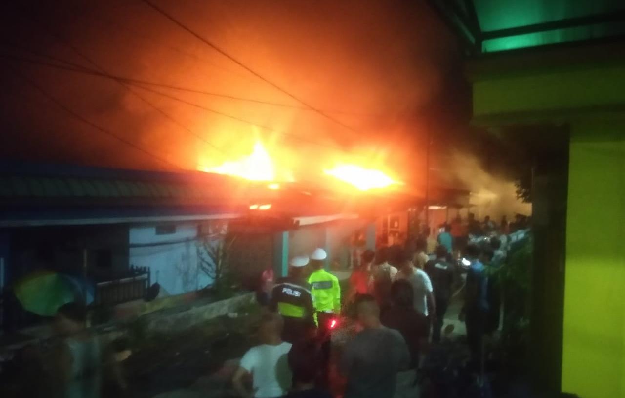 Enam unit rumah terbakar di perumahan Baloi Ditpam RT 002/RW 003, Kelurahan Sukajadi, Kecamatan Batam Kota, Kota Batam pada Rabu, 5 Mei 2021, sekitar pukul 00.27 WIB.
