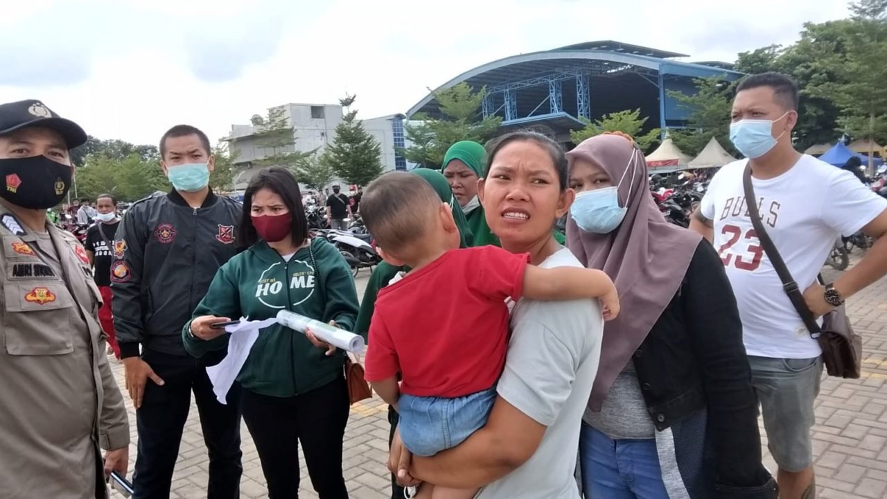 Seorang ibu rumah tangga berinisial JS, terpaksa digiring ke Mapolsek Sagulung. Ibu tiga anak itu tertangkap tangan hendak mencopet dua unit telepon genggam saat mengantre vaksin Covid-19 di SP Plaza, Kota Batam, Kepulauan Riau, Rabu, 28 Juli 2021.
