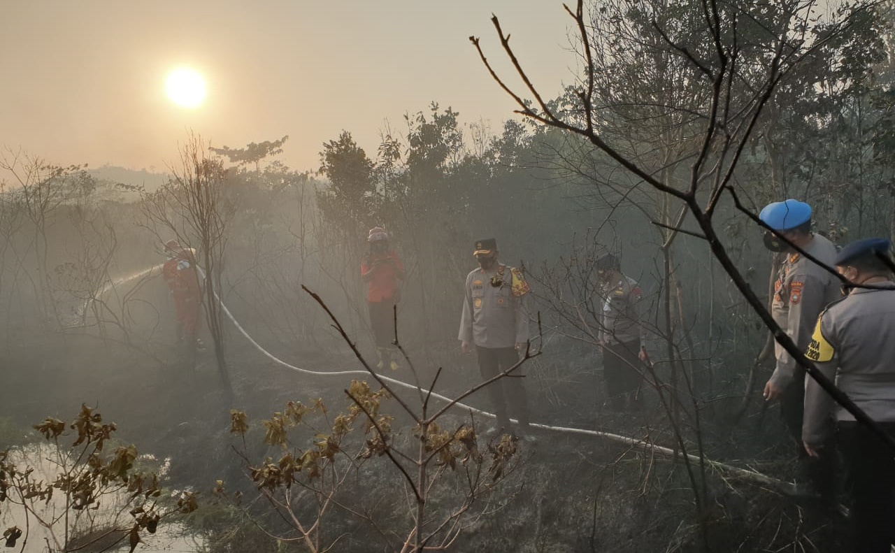 Pemadaman kebakaran hutan dan lahan di Kelurahan Galang, Pulau Galang, pada hari Selasa, 23 Februari 2021. (Foto: Humas Polda Kepri)