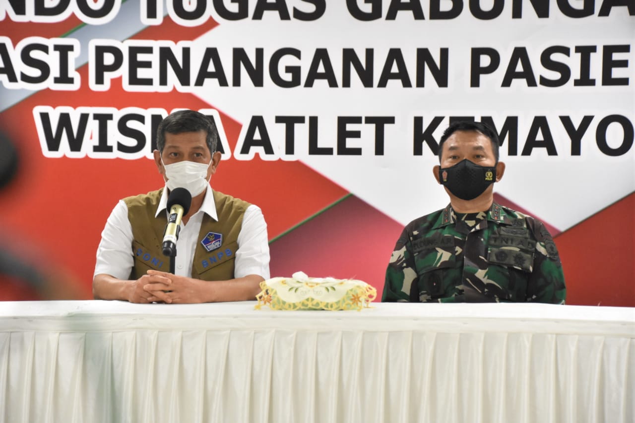 Hadir dalam konferensi pers itu, Pangdam Jaya Mayjen TNI Dudung Abdurachman, selaku Panglima Komando Tugas Gabungan Terpadu (Pangkogasgabpad) Operasi Penangan Pasien Covid-19, Dokter Adib Umaidi, selaku Ketua Tim Mitigasi Pengurus Besar Ikatan Dokter Indonesia (PB IDI), dan Ketua Tim Pakar Gugus Tugas Penanggulangan Covid-19 (Juru bicara Gugus Tugas), Profesor Wiku Adi Sasmiko.