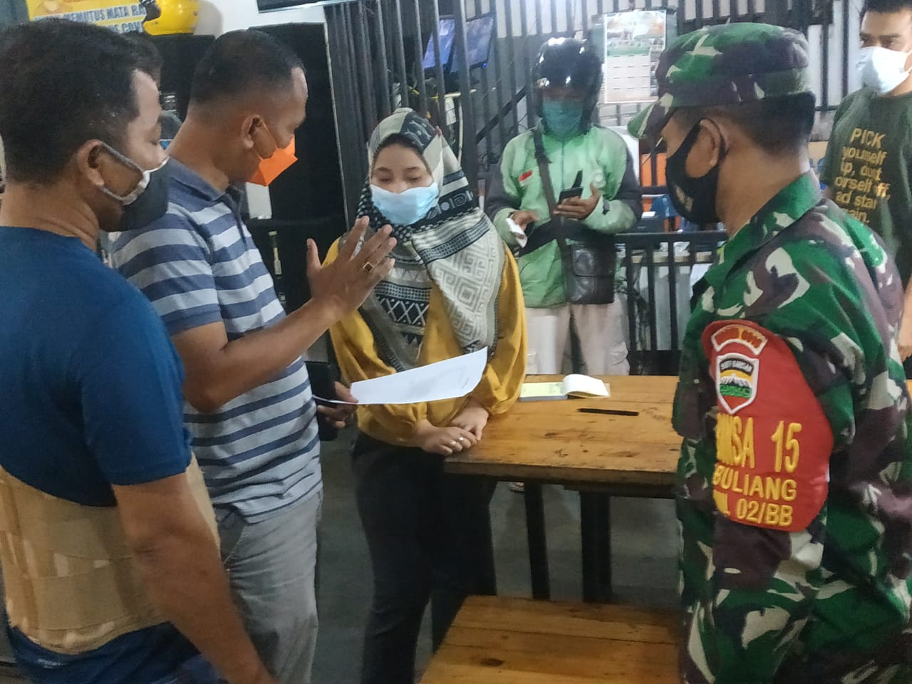 “Sebentar lagi jam 21.00 WIB. Satgas Covid akan datang dan menyuruh bubar lalu tutup. Tak boleh lagi jualan, Bang. Kami yang ditegur nanti,” kata Sari pada pengunjung rumah makan. “Kalau mau pesan makanan dan minuman bisa, Bang. Tapi kami tak layani lagi makan di tempat. Dibungkus aja,” lanjut wanita berhijab merah jambu itu dengan ramahnya.