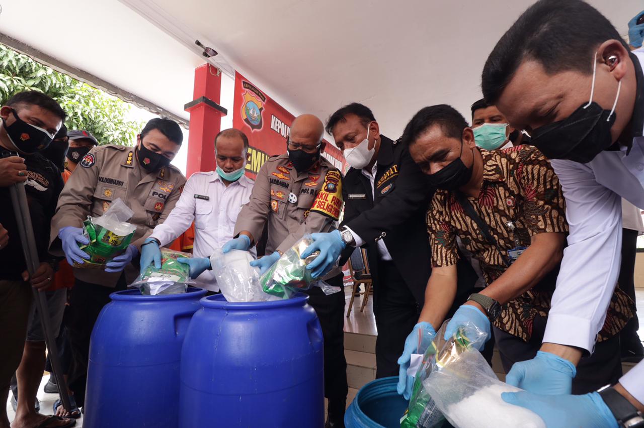 Kepolisan Daerah Kepulauan Riau memusnahkan barang bukti narkotika jenis sabu seberat 46.926,67 gram atau hampir 47 kilogram pada Senin, 8 Februari 2021.
