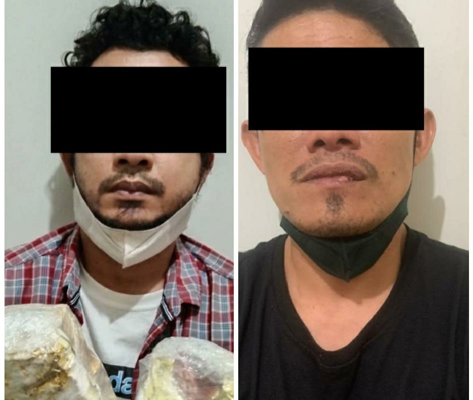 Adapun barang bukti yang berhasil diamankan dari tangan kedua pelaku yakni narkotika jenis sabu-sabu yang dibungkus dengan plastik bening yang dilapisi plastik kemasan teh cina merek “GUANNYINWANG” berwarna emas dengan berat kotor masing-masing 1.053 gram dan 1.051 gram.