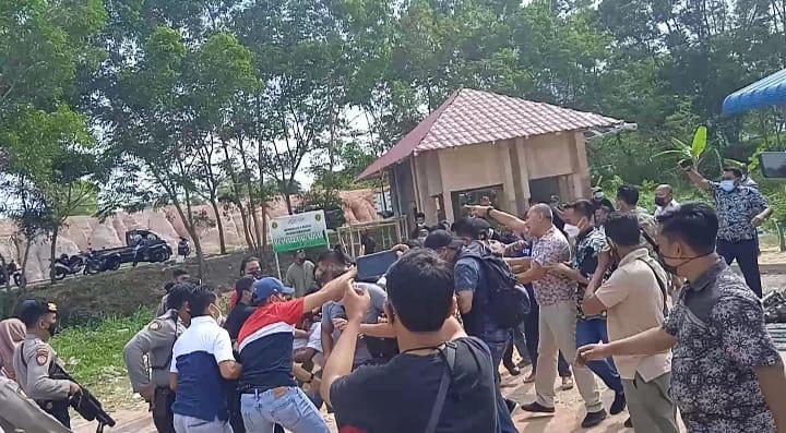 Bentrok polisi dan massa dari dari Perkumpulan Masyakarat Flores Nusantara di kawasan Welcome to Batam, Batam Kepulauan Riau, Jumat, 19 Maret 2021. (Foto: Fathur Rohim)