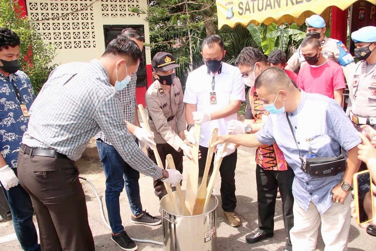 Polisi memusnahkan barang bukti narkotika jenis sabu-sabu di Mapolresta Barelang, Kamis, 26 Agustus 2021. Barang haram seberat 717,24 gram tersebut dimusnahkan dengan cara direbus.
