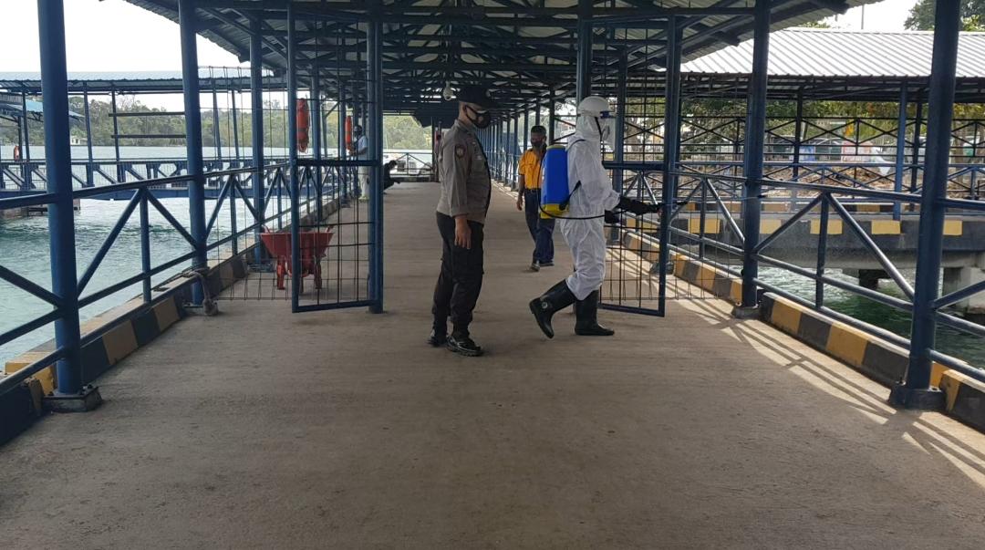 Polsek Kawasan Khusus Pelabuhan (KKP) Kota Batam melakukan penyemprotan disinfektan di beberapa pelabuhan di Kota Batam pada Sabtu, 13 Maret 2021, sekitar pukul 17.00 WIB. Hal ini merupakan upaya pencegahan dan peningkatan kewaspadaan penyebaran virus Covid-19.