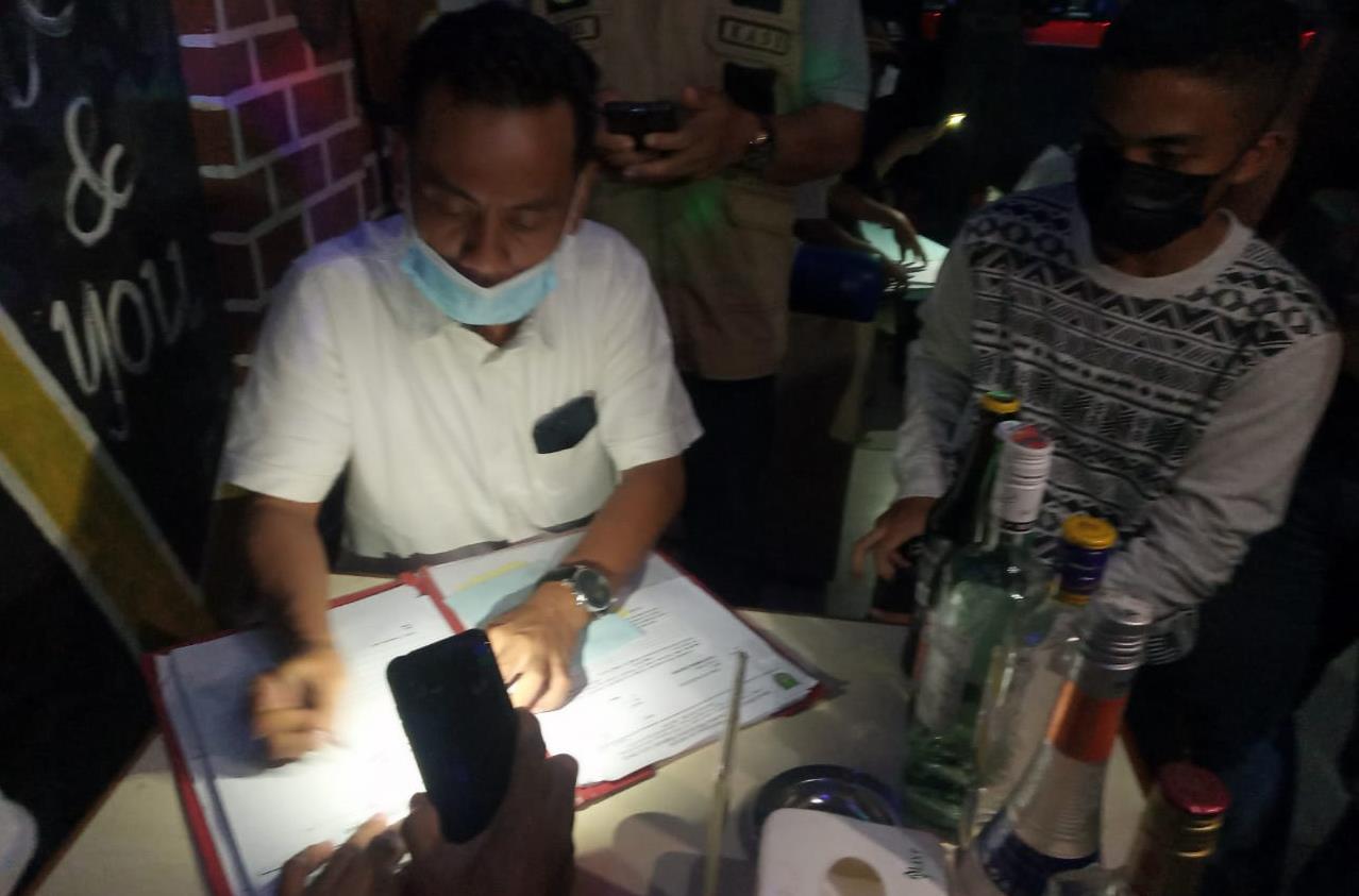 Kemudian petugas lanjut melakukan pengawasan menuju sejumlah kafe dan ditemukan ada yang tidak mampu menunjukkan izin.