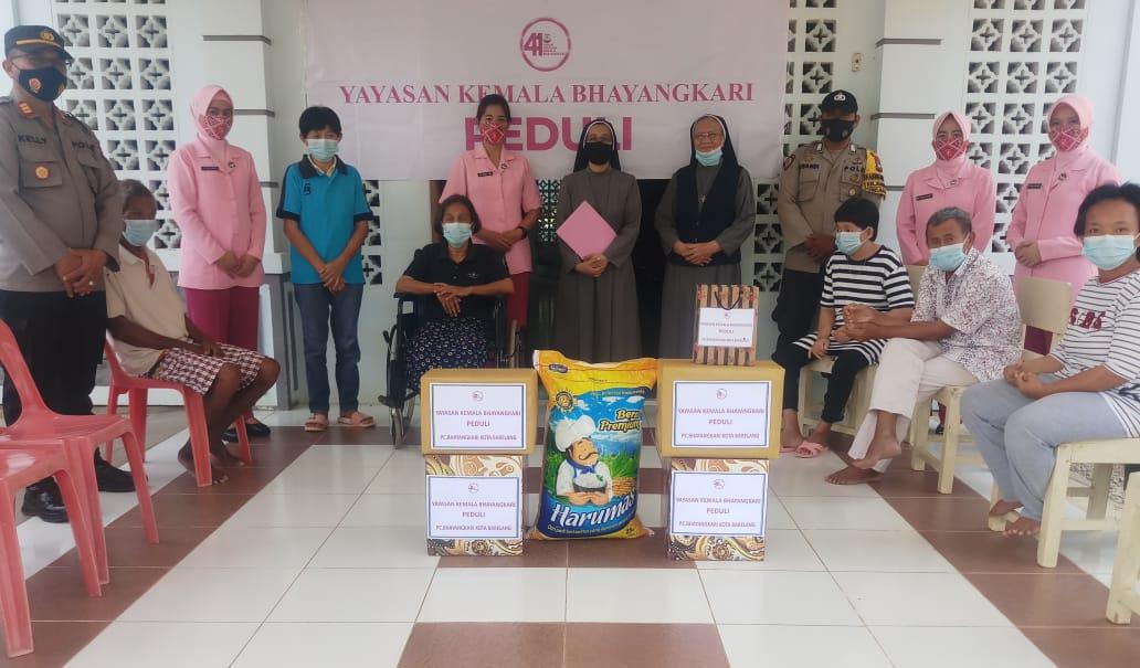 Sempena memperingati hari ulang tahun (HUT) Yayasan Kemala Bhayangkari (YKB) ke–41, YKB cabang Kota Barelang mengunjungi Graha Lansia Titian Kasih di Kampung Sei Raya, RT 002, RW 004, Kelurahan Sembulang, Kecamatam Galang, Kota Batam, Provinsi Kepri, Sabtu, 20 Maret 2021.