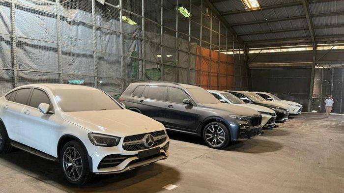 Sederet mobil mewah terparkir di gudang tempat penimbunan sementara (TPS) milik PT Persero di Pelabuhan Batu Ampar, Kota Batam, Kepulauan Riau. (Foto: Arsip pribadi narasumber)