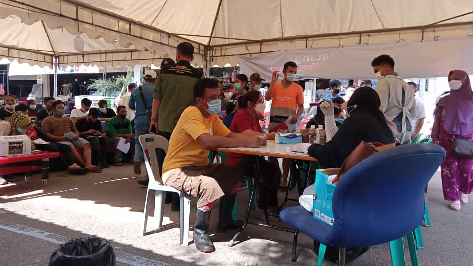 Para pedagang di Pasar Mega Legenda, Kota Batam, Kepulauan Riau, baru mengikuti proses vaksinasi dosis satu. Alasan mereka baru mau ikut divaksin karena proses vaksinasi selama ini terpusat di tengah kota dan antreannya lama. “Kalau [lapak] ditinggal, pendapatan harian kami bagaimana?” kata Mimin, pedagang batagor di sana kepada HMS, 6 Oktober 2021.