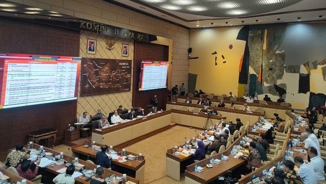 Suasana rapat Komisi II DPR RI dan KPU Cs. di Gedung DPR Senayan, Rabu 20 September 2023 bahas tentang penetapan jadwal pendaftaran capres dan cawapres pada Pemilu 2024. (Foto: Ist./detikcom).