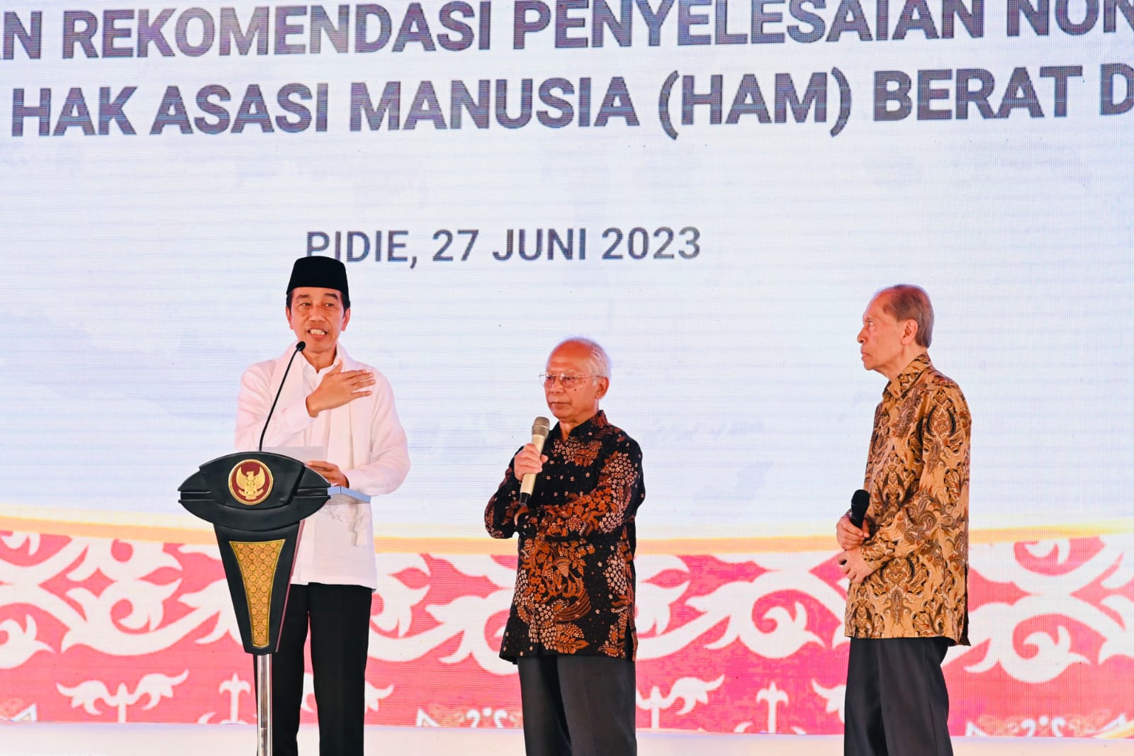 Hal tersebut terjadi pada acara peluncuran Program Pelaksanaan Rekomendasi Penyelesaian non-yudisial pelanggaran Hak Asasi Manusia (HAM) berat di Rumoh Geudong, Kabupaten Pidie, Provinsi Aceh, pada Selasa, 27 Juni 2023, seperti dikutip dari presidenri.go.id.