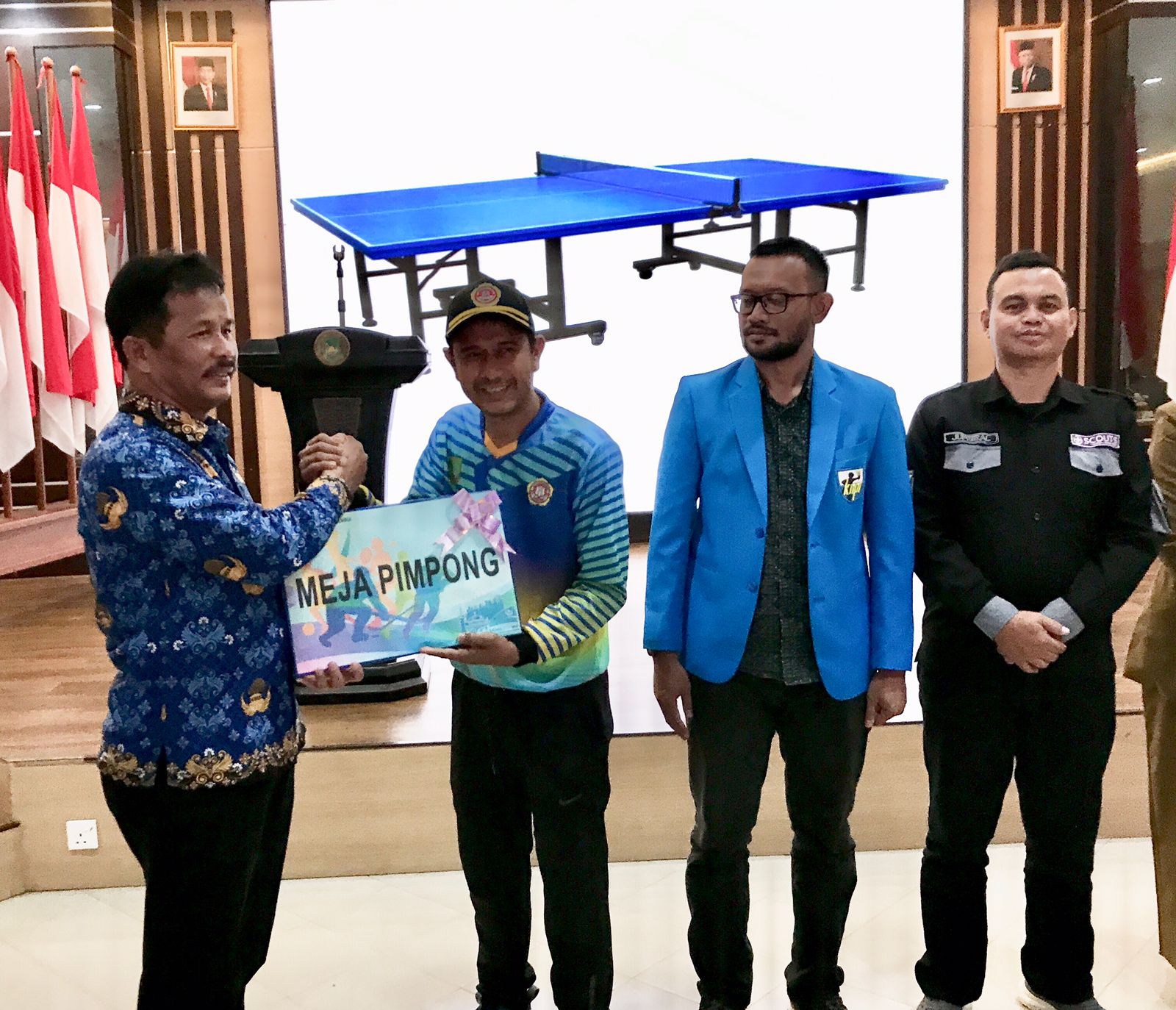 BATAM- Pemerintah Kota Batam melalui Dinas Pemuda dan Olahraga (Dispora) Kota Batam menyerahkan bantuan 4000 item peralatan olahraga kepada masyarakat Batam yang terbagi dalam 14 cabang olahraga (Cabor) di aula lantai 4 Kantor Wali Kota Batam, Senin, 17 Juli 2023 sore.