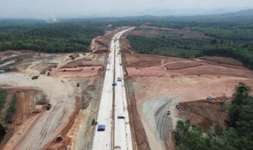 Salah satu ruas jalan tol yang menghubungkan Jambi-Jakarta yang kini terus dikerjakan. (Foto: Ist./PUPR).