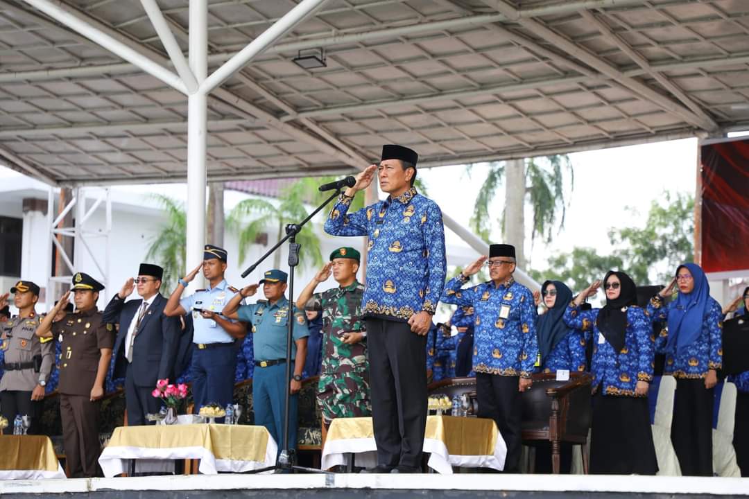 Penjabat Sementara (Pjs) Wali Kota Batam, Andi Agung, bertugas sebagai inspektur upacara dalam peringatan hari sumpah pemuda di Dataran Engku Putri Batam Center, Senin, 28 Oktober 2024. (Foto: Diskominfo).