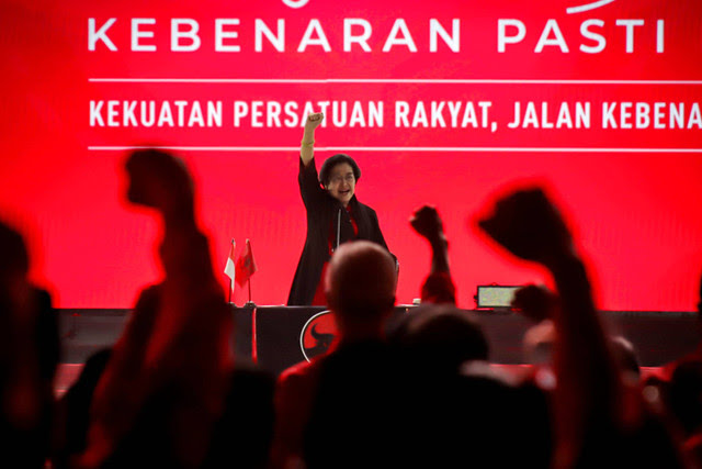 Ketua Umum PDIP Megawati Soekarnoputri berpidato pada Rakernas V PDIP di Beach City International Stadium Ancol, Jakarta, Jumat, 24 Mei 2024. (Foto: Ist./kumparan).
