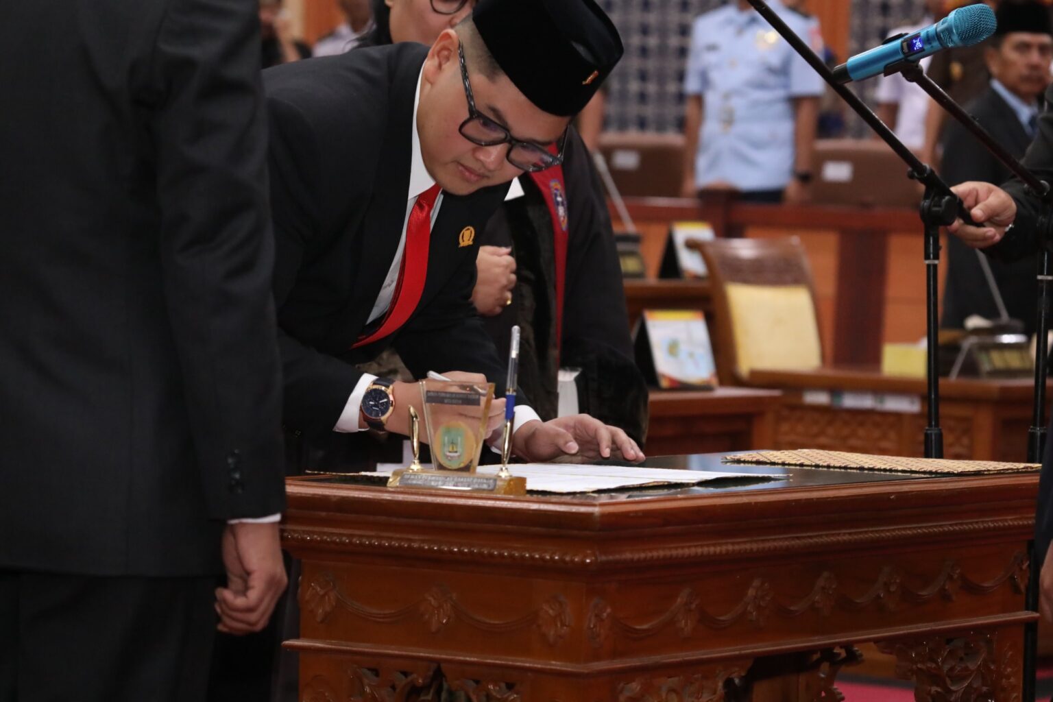 DPRD Kota Batam menggelar rapat paripurna pengucapan sumpah janji pergantian antarwaktu (PAW) anggota DPRD Kota Batam atas nama Gabriel Safto Ara Anggito Sianturi BCom SH dari PDI Perjuangan, Senin, 11 November 2024 siang. Gabriel dilantik menjadi anggota Dewan menggantikan Nuryanto SH MH yang mengundurkan diri karena mencalonkan diri sebagai calon Wali Kota Batam.