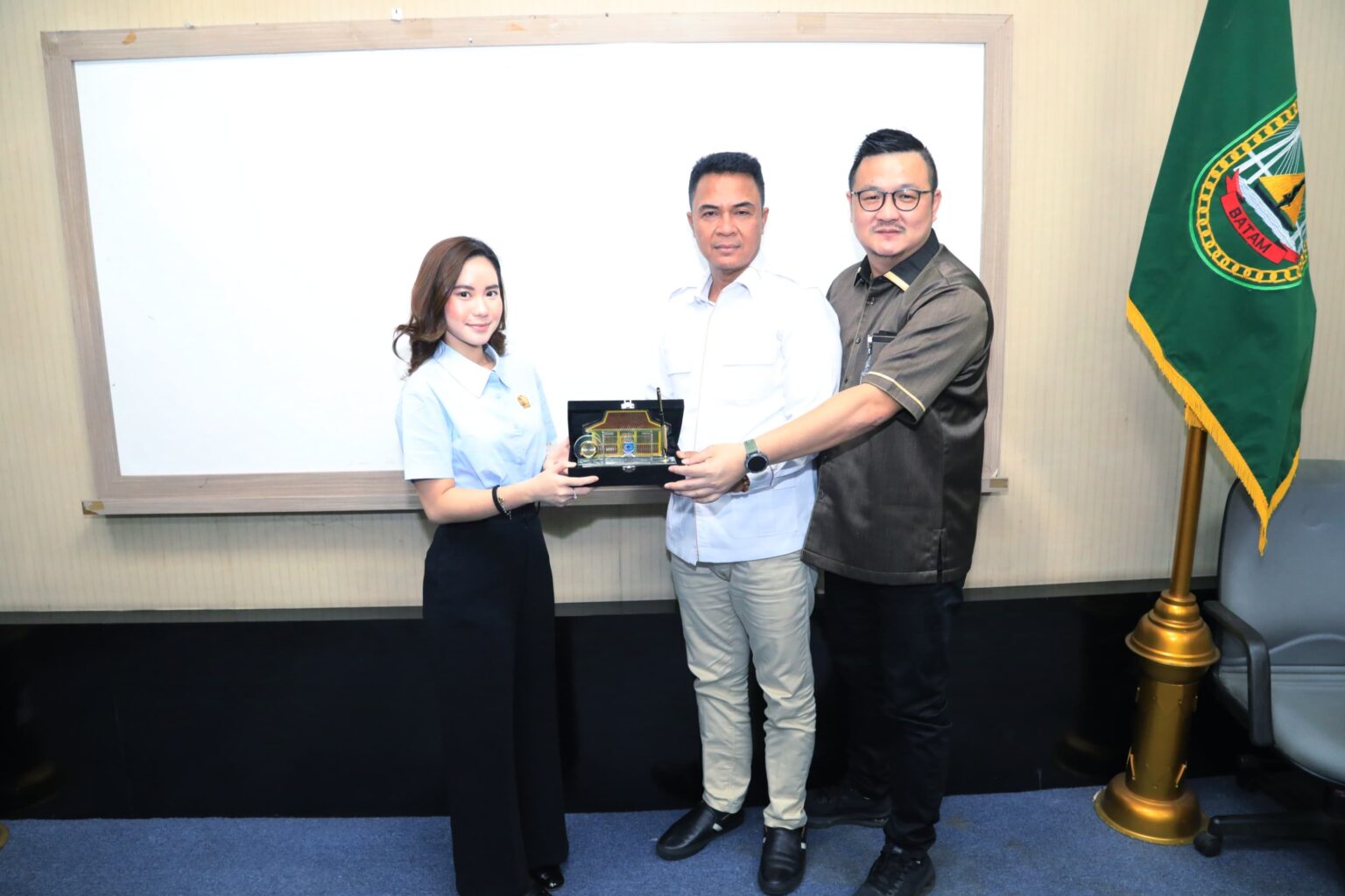 Wakil Ketua III DPRD Tangsel, Maria Teresia Suhardjo BSc menerima penghargaan dari anggota DPRD Kota Batam. (Foto: Humas DPRD).