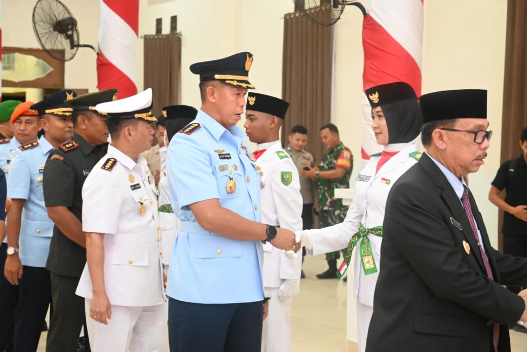 NATUNA – Komandan Lanud Raden Sadjad Natuna, Kolonel Pnb I Ketut Adiyasa Ambara, turut serta dalam pengukuhan Pasukan Pengibar Bendera Pusaka (Paskibraka) Kabupaten Natuna Tahun 2025 di Gedung Sri Serindit Ranai, Jumat, 15 Agustus 2025 malam.