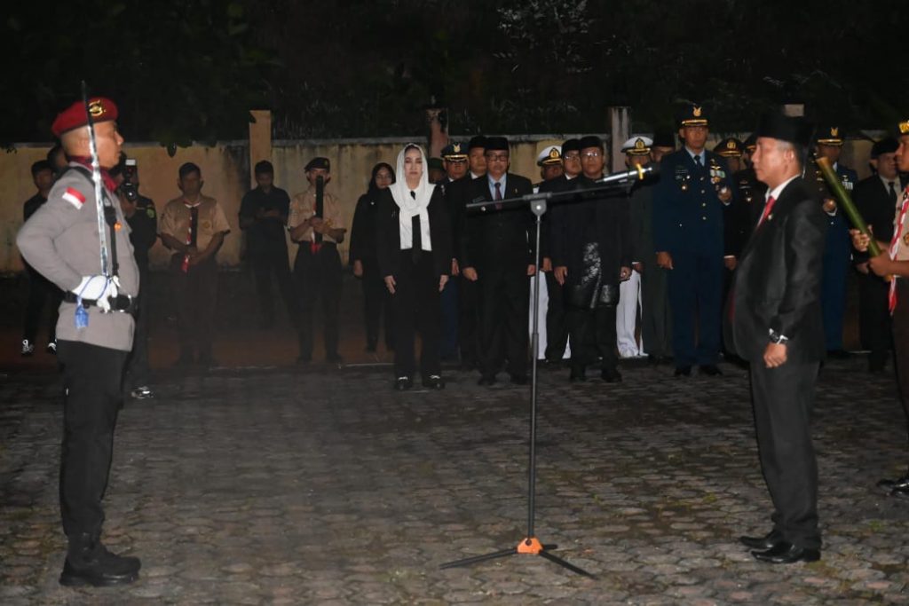 NATUNA – Ketua DPRD, Rusdi Pimpin Apel Kehormatan Renungan Suci HUT ke-80 RI di Taman Makam Pahlawan (TMP) Natuna, Minggu, 17 Agustus 2025 malam.