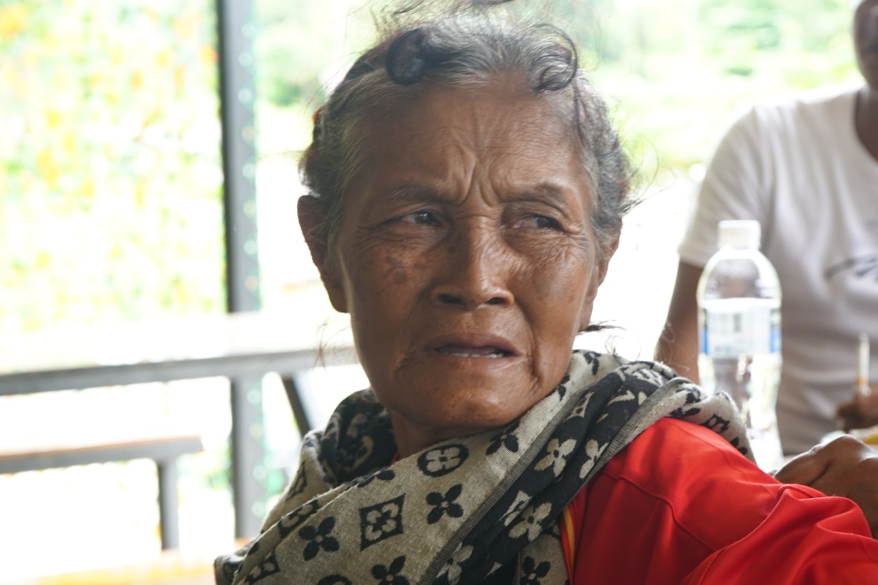 Warga Kampung Tua Rempang Cate, Pulau Rempang, Batam, Nur Suarni (65) saat berada di depan kantor Polresta Barelang. (Foto: Putra Gema Pamungkas).