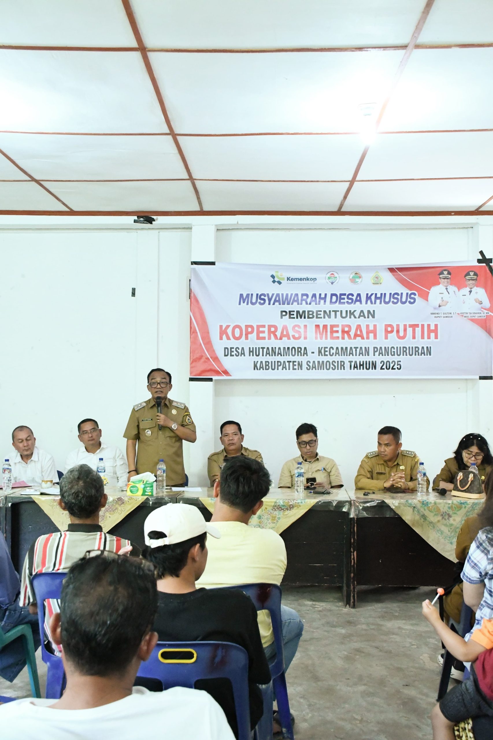 Wakil Bupati Ariston Tua Sidauruk dalam kesempatan itu menyampaikan, suatu kehormatan bagi Desa Hutanamora bahwa proses pemilihan pengurus Koperasi Merah Putih disaksikan pejabat dari Kementerian Koperasi RI.