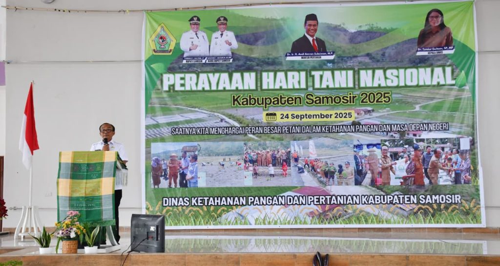 SAMOSIR – Pemerintah Kabupaten (Pemkab) Samosir menggelar peringatan Hari Tani Nasional tingkat kabupaten dengan meriah di Sopo Gereja Bolon HKBP Pangururan, Rabu, 24 September 2025. Kegiatan ini diwarnai pameran produk unggulan UMKM, termasuk karya Petani Milenial, produk Masyarakat Perlindungan Indikasi Geografis (MPIG) Andaliman Pulo Samosir, stand Pangula Nature, serta berbagai produk lokal lainnya.
