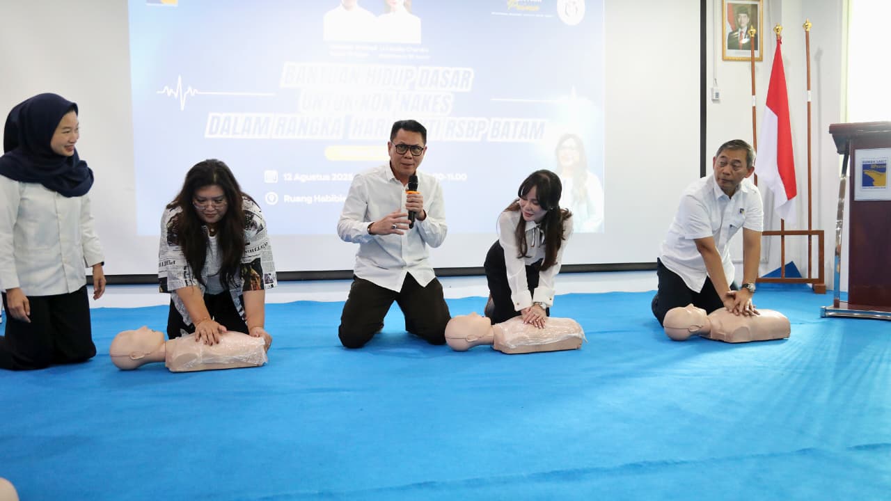 BATAM – Dalam rangka memperingati Hari Bakti Rumah Sakit Badan Pengusahaan (RSBP) Batam ke-42 tahun, Badan Usaha RSBP Batam menggelar Pelatihan dan Simulasi Bantuan Hidup Dasar (BHD) untuk Non Nakes di Aula RSBP, Sekupang, Selasa, 12 Agustus 2025.