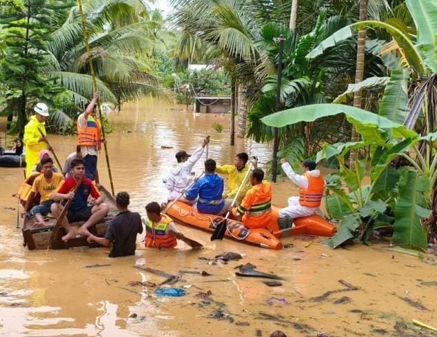 Tim gabungan mengevakuasi warga korban banjir di Desa Paloh Punti, Kecamatan Muara Satu, Kota Lhokseumawe, Provinsi Aceh, Jumat, 27 November 2025 (Foto: Ist./ kompas.com).