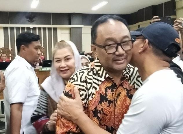 Alwin Basri mantan Ketua Komisi D DPRD Provinsi Jawa Tengah (batik) dan mantan Wali Kota Semarang, Hevearita Gunaryati Rahayu (dua dari kiri) saat mengikuti sidang di Pengadilan Tindak Pidana Korupsi (Tipikor) Semarang, Senin, 21 April 2025. (Foto: Ist./Kompas.com).