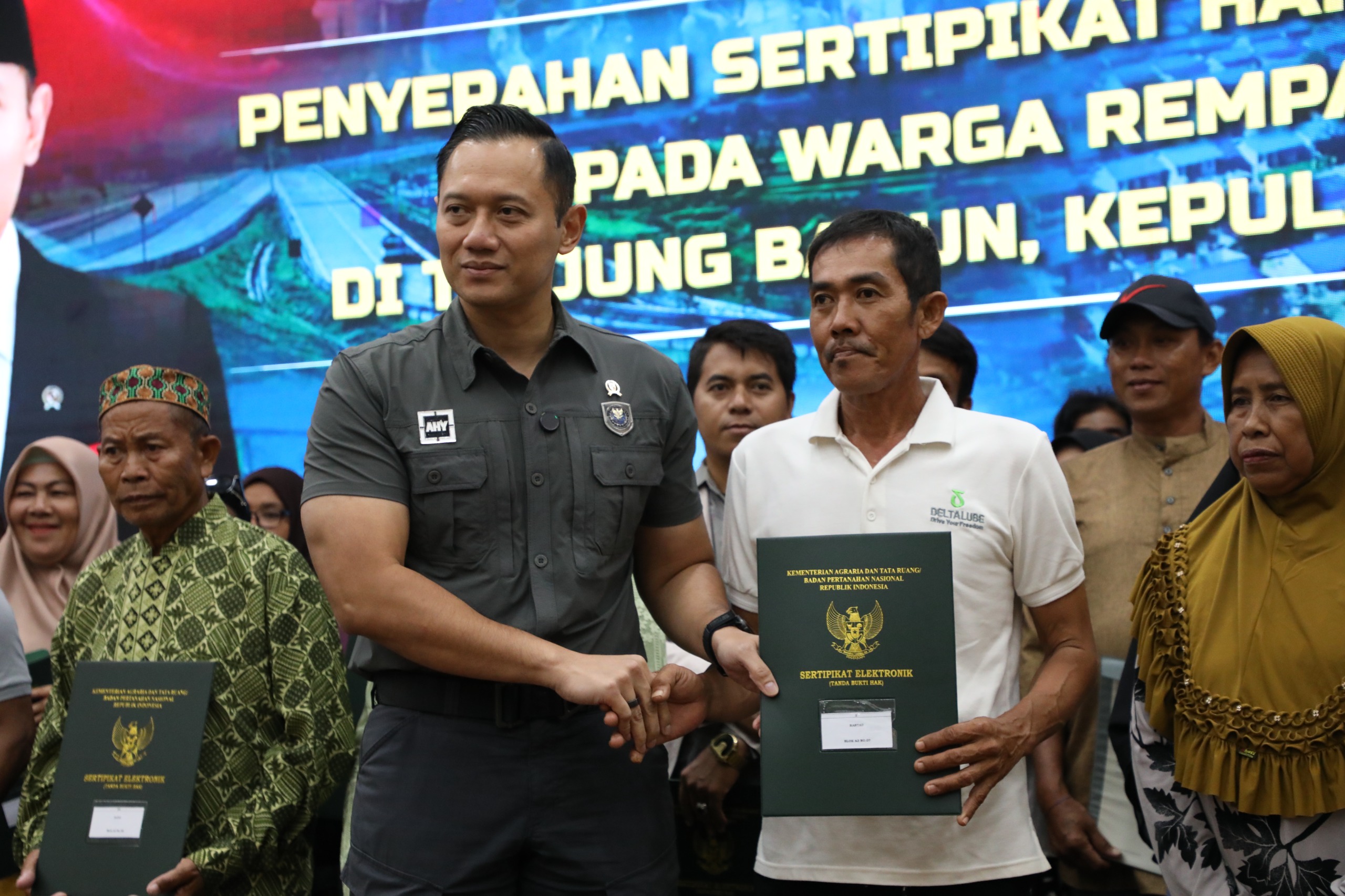 “Ribuan terima kasih saya dan keluarga ucapkan kepada Pak Presiden, Pak Menteri AHY dan BP Batam. Alhamdulillah, akhirnya kami menerima sertifikat untuk rumah baru kami di Tanjung Banun,” ujarnya usai menerima SHM dari Menko Bidang Infrastruktur dan Pembangunan Kewilayahan RI, Agus Harimurti Yudhoyono (AHY), Selasa, 18 Maret 2025.