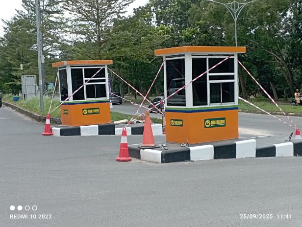 Pantauan di lapangan menunjukkan gardu parkir oranye bertuliskan “Tegar Parking” sudah berdiri di pintu masuk kawasan. Beberapa gardu masih terikat pita pengaman, tanda belum beroperasi. Namun, warga menilai pemasangan itu bukti kebijakan tetap dipaksakan.