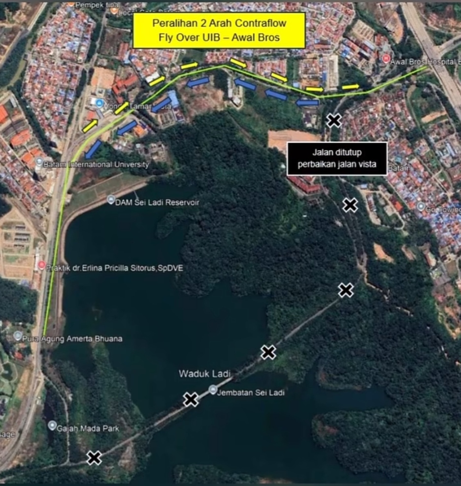 Selama periode tersebut, arus lalu lintas dialihkan melalui jalur alternatif menuju Tiban dengan skema contraflow ke arah Fly Over Sei Ladi – UIB.