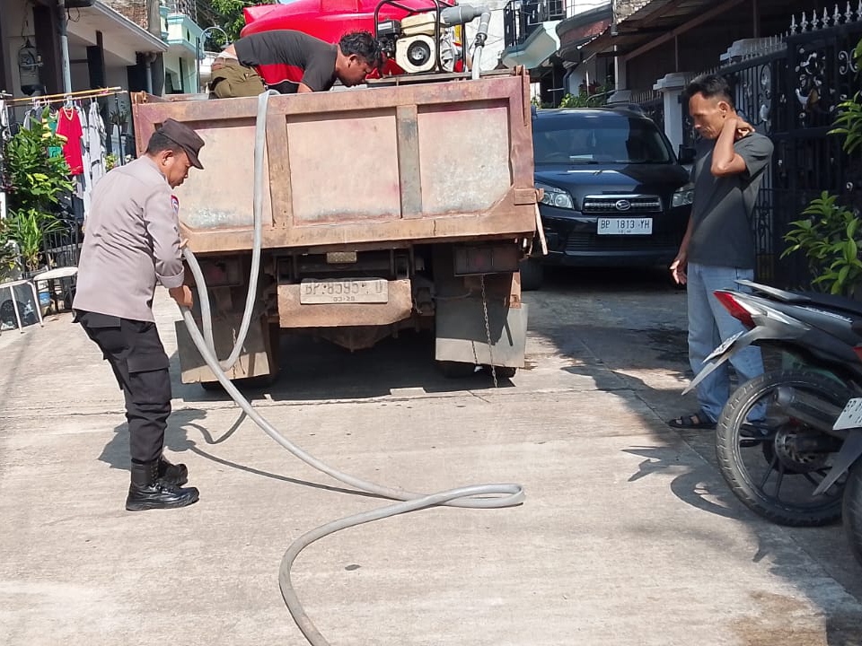 Personel Polsek Batu Ampar melakukan pengawalan penyaluran air bersih ke rumah-rumah warga Kota Batam (Dok:Polsek Batu Ampar)